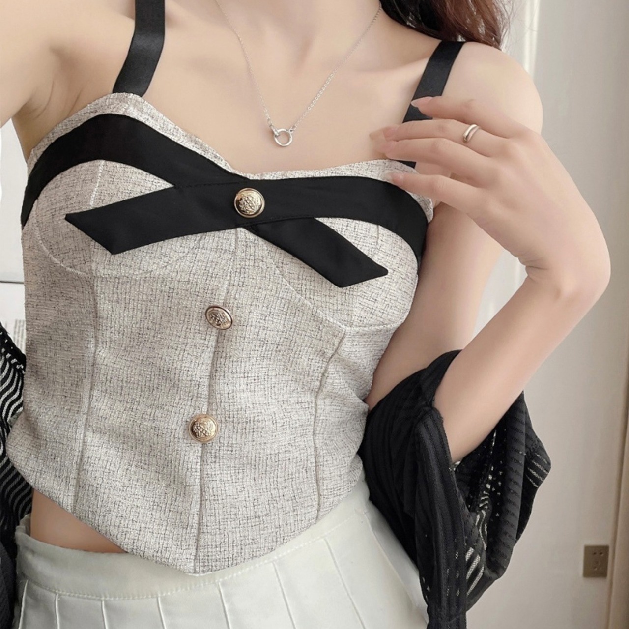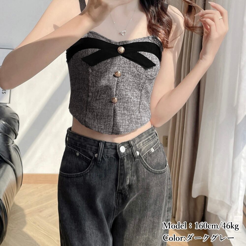 セクシーさと女子力を上げるツイード素材のキャミソールです。